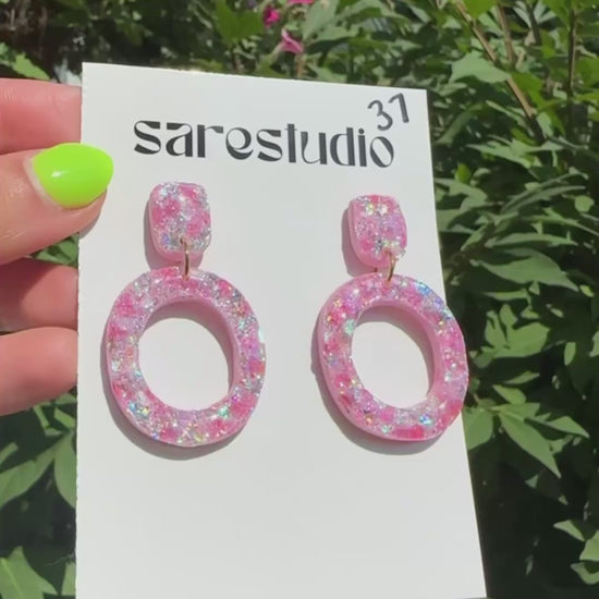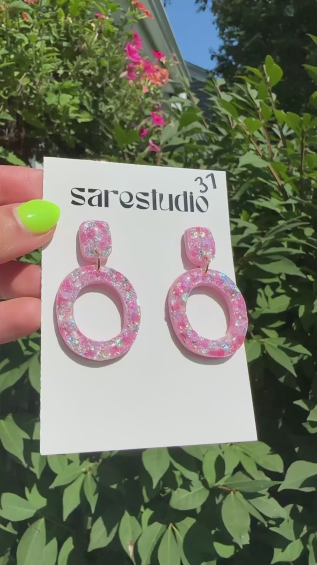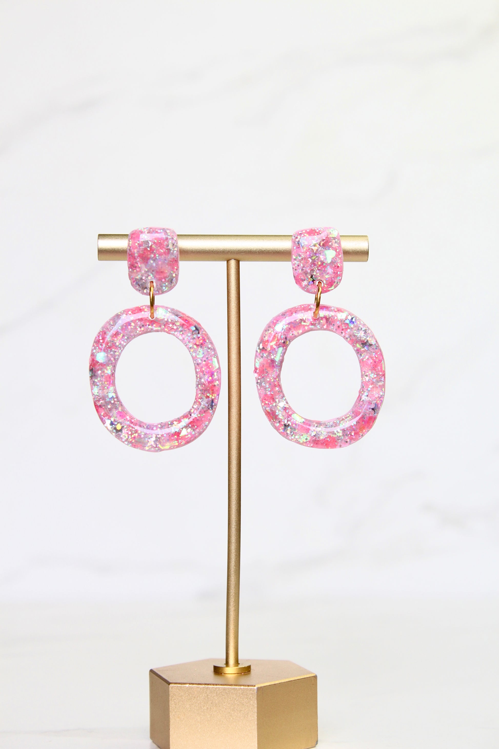 Glitter Clay Earrings in Pink | Handmade Lightweight Statement Earrings | Sparkly Polymer Clay Jewelry | Party & Everyday Style