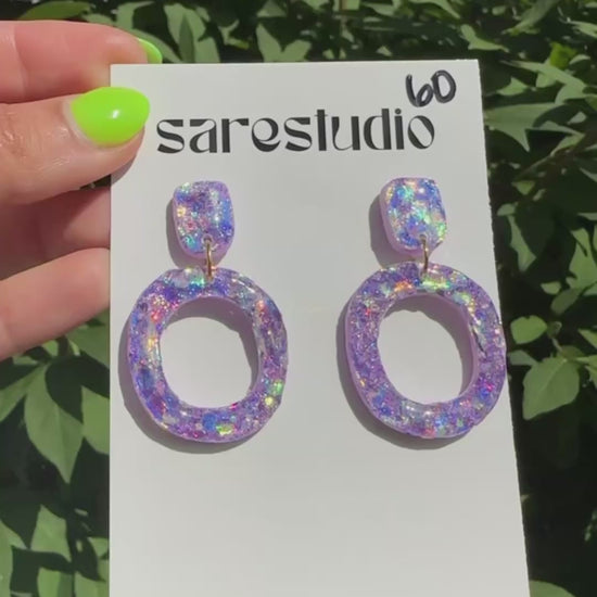 Glitter Clay Earrings in Purple | Handmade Lightweight Statement Earrings | Sparkly Polymer Clay Jewelry | Party & Everyday Style